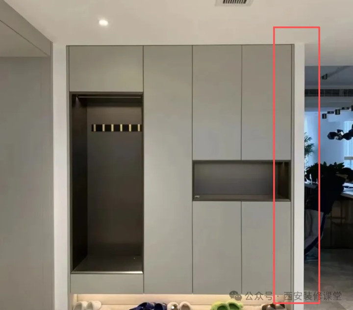 不仅仅是色差问题,而且墙体不平整,还有难看的缝隙问题,这个解决办法可以参考这篇『衣柜靠墙缝隙,这5种情况能解决好,就后顾无忧了』今天重点看一下色差解决办法,4种办法任意一种都可以解决这种细节遗憾。