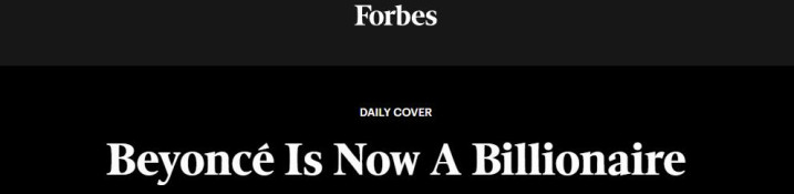 据《福布斯》报道,碧昂丝(Beyoncé)正式跻身亿万富翁行列,成为第五位达成这一成就的音乐人。