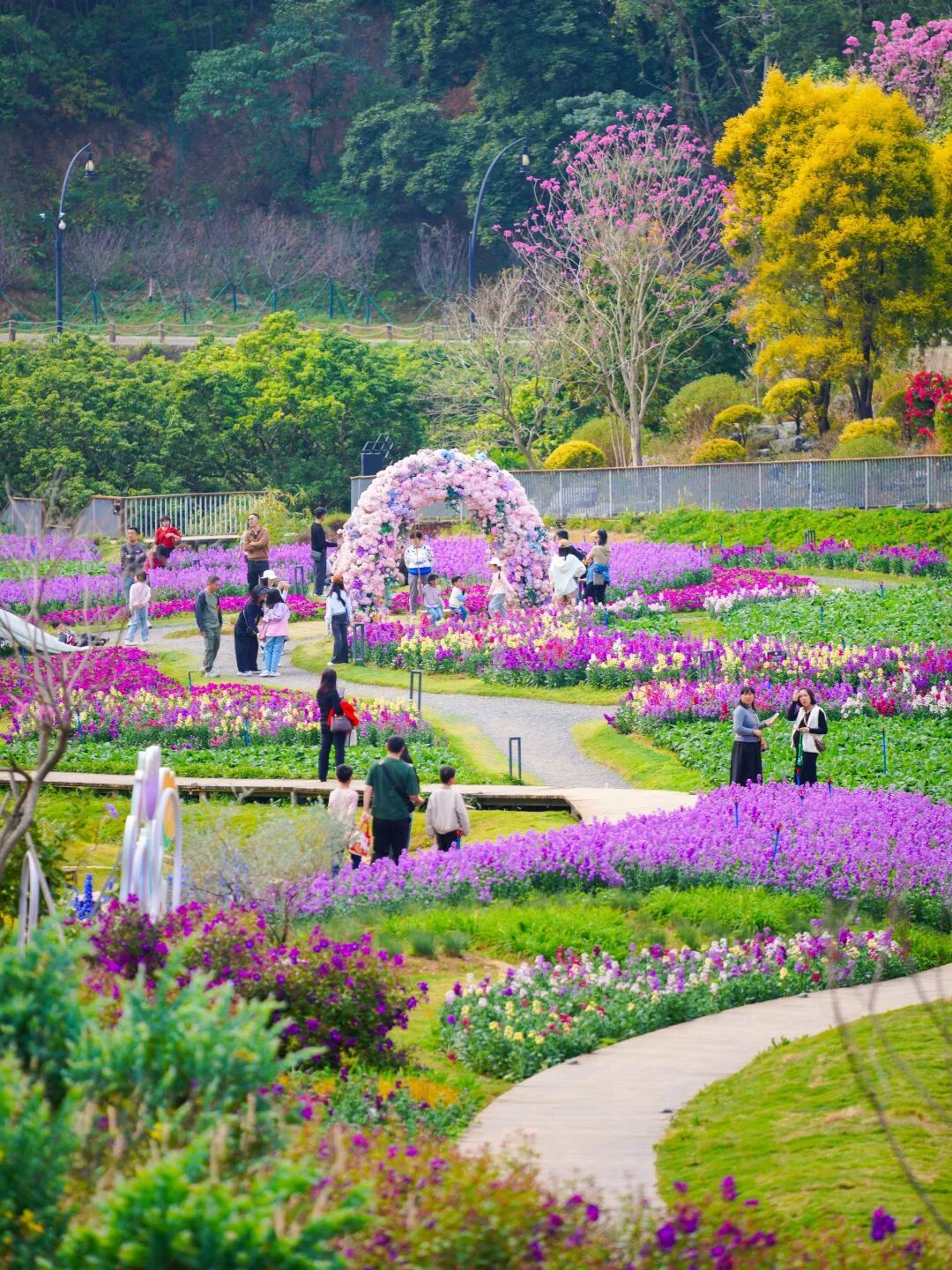 ②打卡天适樱花悠乐园如云似霞的樱花,邂逅宫粉紫荆、黄花风铃木,沉浸式赏春日繁花;