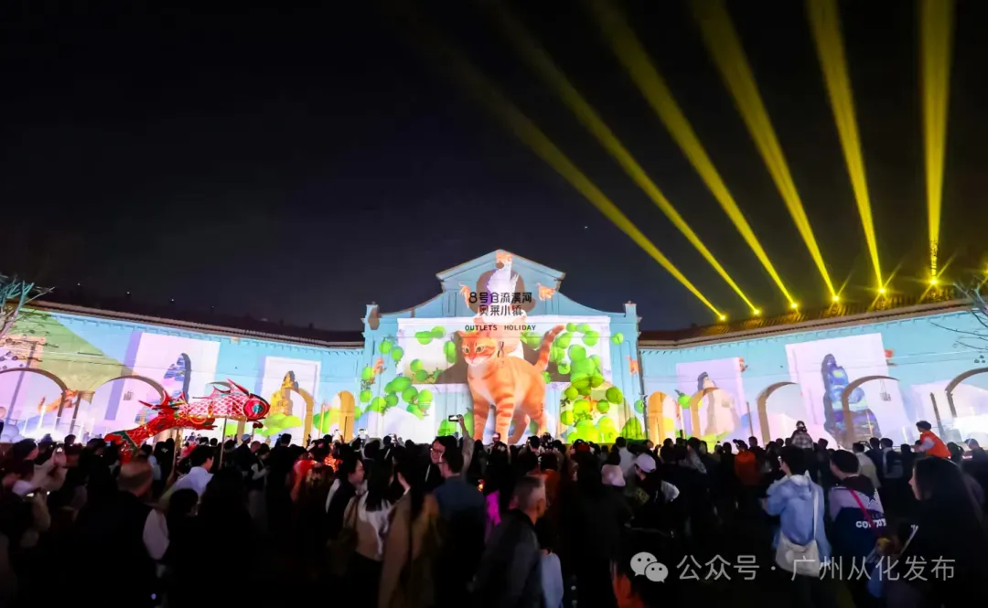 ③休闲向:打卡广州活动、玩趣味亲子游戏,留存温馨回忆;广州8号仓「流溪烟渚」新春灯会,每晚20点看《猫斯拉的艺术奇遇》华南超大光影秀2.0,感受传统与现代的光影碰撞。